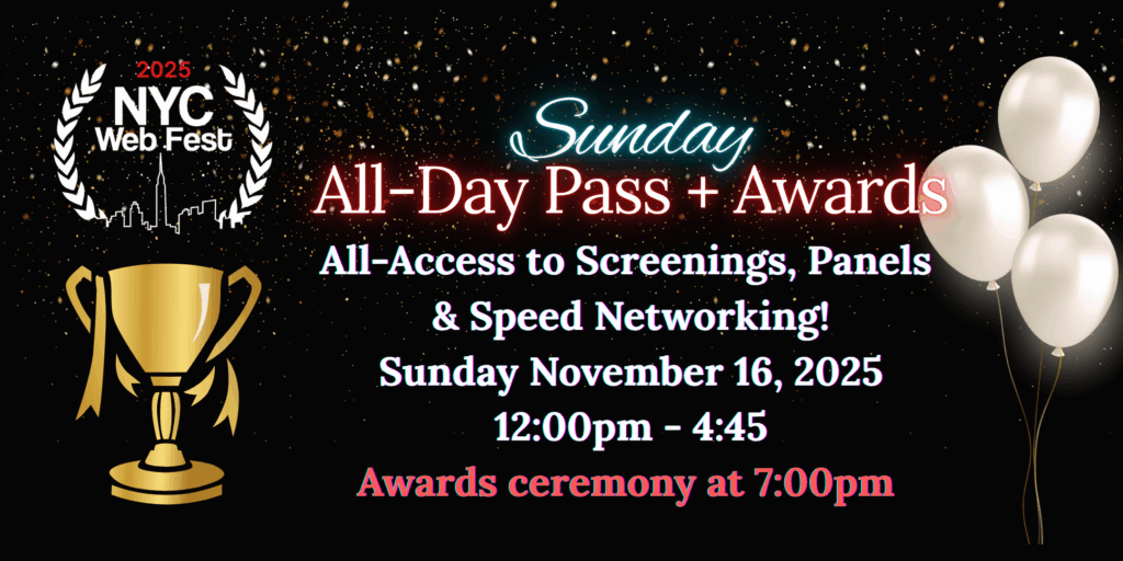 Screenings, international creators panel, and the NYC Web Fest Awards & Cocktail Reception. Wrap up the 12th Annual NYC Web Fest with a Sunday packed with inspiration and celebration!